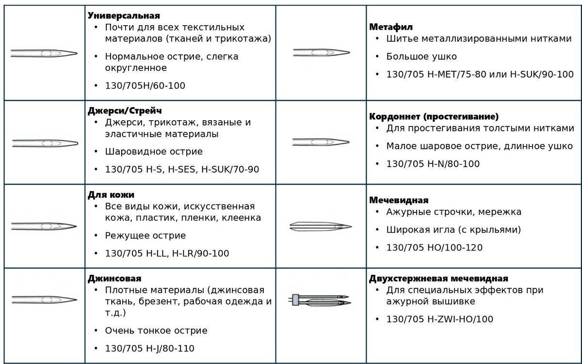 Для каждого класса машин подходят разные иглы: