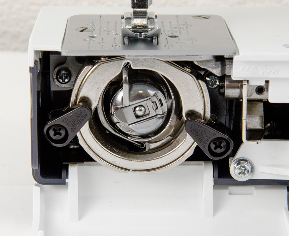 Для максимально комфортного шитья машина оснащена <b style="color: #383838;">встроенным нитевдевателем</b>, системой отключения зубчатой рейки и <b style="color: #383838;">автоматическим устройством намотки нити на шпульку</b>. Большая ра