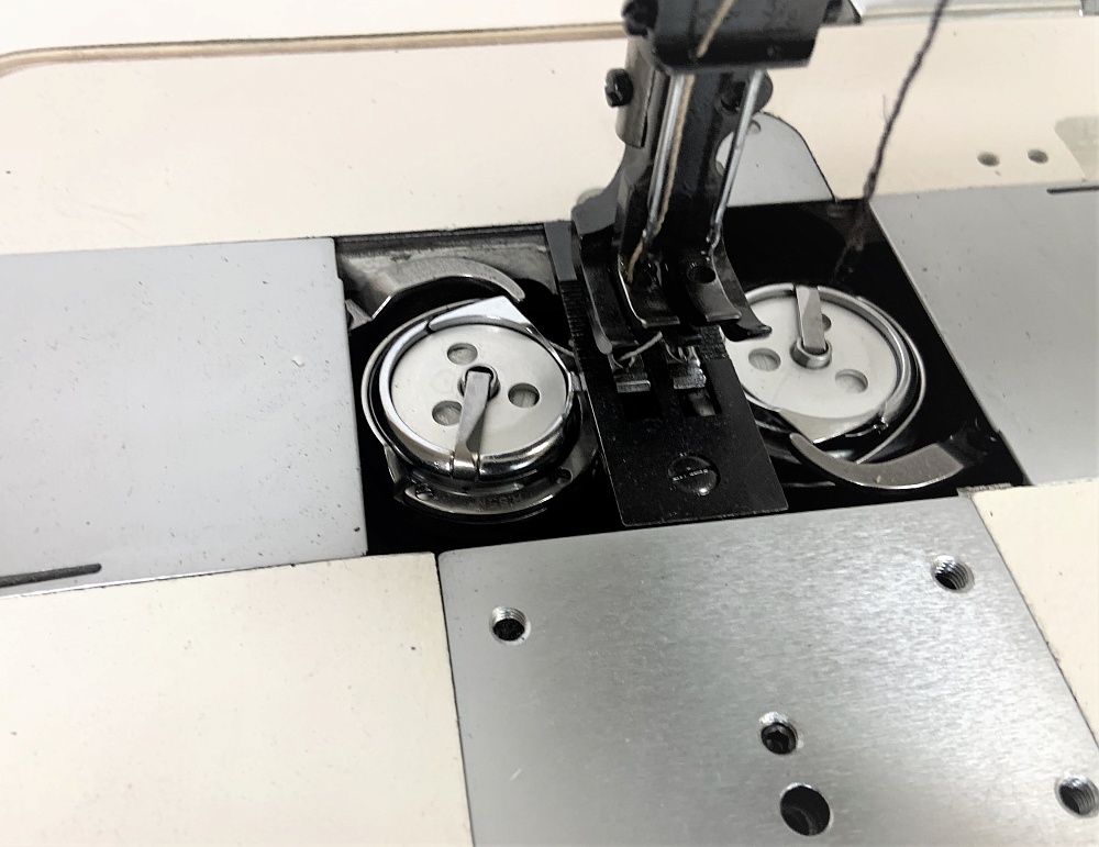 Горизонтально расположенный челнок (вертикальная ось) дает возможность получать красивый и качественный шов на различных материалах.